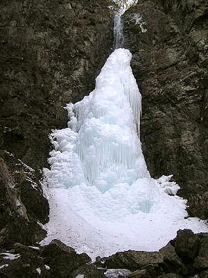 駐車場から、程よくきつい道のりを徒歩20分。 たどりついた先に見える滝はまさに芸術品。 全体で30mの落差がありますが この写真を撮影した時は、滝の80%程が 凍っていて見事な氷瀑でした。 普段はオーソドックスな直瀑ですが 季節によって大きく景色が変わる、代表的な 滝の一つでしょう。 夏と冬の全く別の景色を楽しみたいものです。 |
