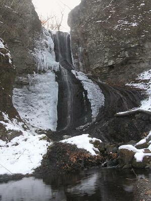 溶岩滝のお隣の滝です。 溶岩滝を前に見て、さらに右の奥にあります。 面白いことに、溶岩滝が左にカーブを描いて 流れるのに対して この滝は右にカーブを描いて流れていて