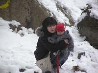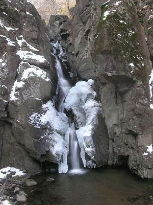 とてもきれいに見えました。 通常、寒い時期になると 完全に凍った滝になるようですが 撮影した年(2007年1月)は暖冬のため ほとんど凍っていませんでした。 |
