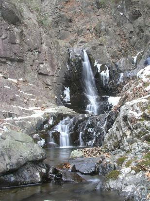 高崎市から、国道406号線でどんどん西へ 進み、旧倉渕村役場を過ぎてすぐの岩氷地区に 倉渕せせらぎ公園という施設があります。 公園から、そばを流れる相間川に沿って 上流へ進みます。道はだんだん細くなり 荒れた林道に変わるので 車高の高い車で4駆車がお勧めです。 林道の先にある十丈の滝への途中に 見つけることができます。 |