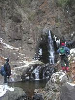 十丈の滝を目指し、林道を進むと 右側に現れる滝です。 この林道沿いには 名前があったりなかったりする滝が いくつも流れていますが その中で、なかなかきれいな滝の 一つに入ると思いました。 |