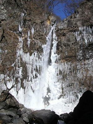 日本百名山に数えられている赤城山。 不動大滝は、赤城山を形成する 外輪山の南にある、落差50mの滝です。 この滝を流れる水は、旧火口の小沼から 銚子の伽藍(ガラン)と呼ばれる大きなV字峡を 通って流れています。 滝つぼまで行けるので 滝下から見上げることができ、 迫力を十分に味わうことが出来ます。 |