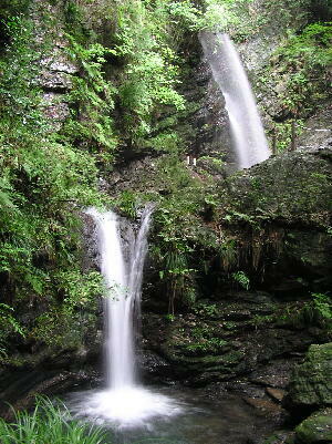 遊歩道に戻りもう少し進むと落差5mほどとかわいらしい男滝と女滝が
