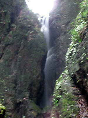 遊歩道から左にある渓流の小さな橋を渡ると天狗滝があります。