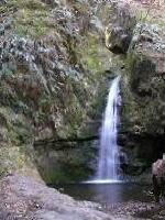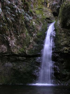 檜原村役場の前を通る、檜原街道(県道33号) の十里木交差点を曲がります。 ここから、約10kmほど道なりに進みます。 まず、7〜8kmほど走ると未舗装の林道になり、 その道を500mほど進みます。また舗装された 道を2kmほど走り、林道終点。適当に車を停め、 10分ほど歩くと滝があります。 |