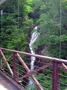 都民の森の中にある、落差30mの大滝です。 滝の正面に大きなつり橋がかけられ 目の前で眺める事ができます。 橋の上からでも、充分に楽しめますが 本来の滝の素晴らしさを味わうには 橋の左手から踏み後をたどって滝下へ 降りる事をお薦めします。 ただし、恥ずかしいので 人の目はできるだけ避けましょう(^^; |