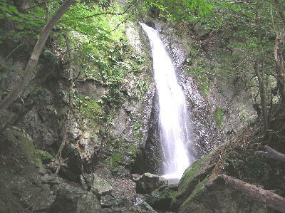 天狗滝に向かう山道の途中、15mほどのなかなか立派な滝が
